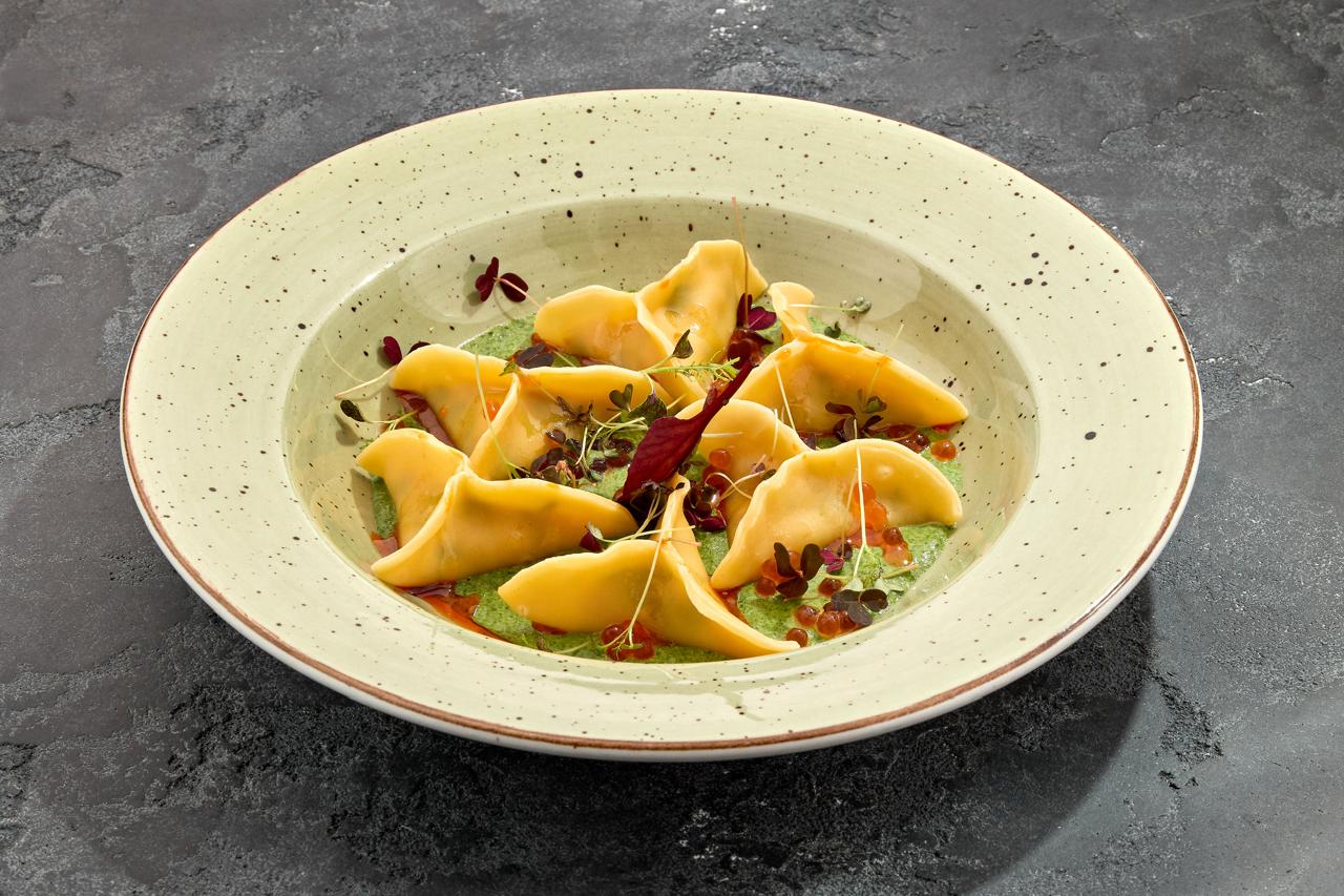 тесто, лосось, сыр креметта, сливки, соус из шпината